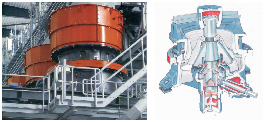 單缸液壓圓錐破碎機(jī)的破碎過(guò)程是在定錐和偏心旋轉(zhuǎn)的動(dòng)錐之間完成的。破碎機(jī)的水平軸由電動(dòng)機(jī)通過(guò)三角膠帶驅(qū)動(dòng),水平軸通過(guò)齒輪帶動(dòng)偏心套,偏心套迫使主軸旋回運(yùn)動(dòng)產(chǎn)生偏心距。給料通過(guò)破碎機(jī)上部的給料口進(jìn)入破碎機(jī),碎石通過(guò)破碎機(jī)下部排料口排出。